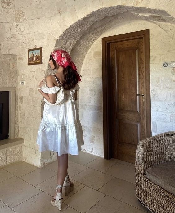 Neutrale accessoires: denk aan beige hoeden, sjaaltjes en raffia tassen die de levendige roodtinten complementeren.